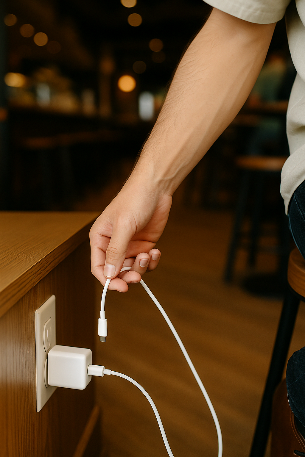Although the original charger is convenient to carry, its short cable length limits practical use in many everyday situations. When outlets are located far from tables or work surfaces, such as in cafes or studios, it becomes difficult to charge devices comfortably. This lack of reach reduces flexibility and convenience, especially in places where outlet availability and placement cannot be relied on.