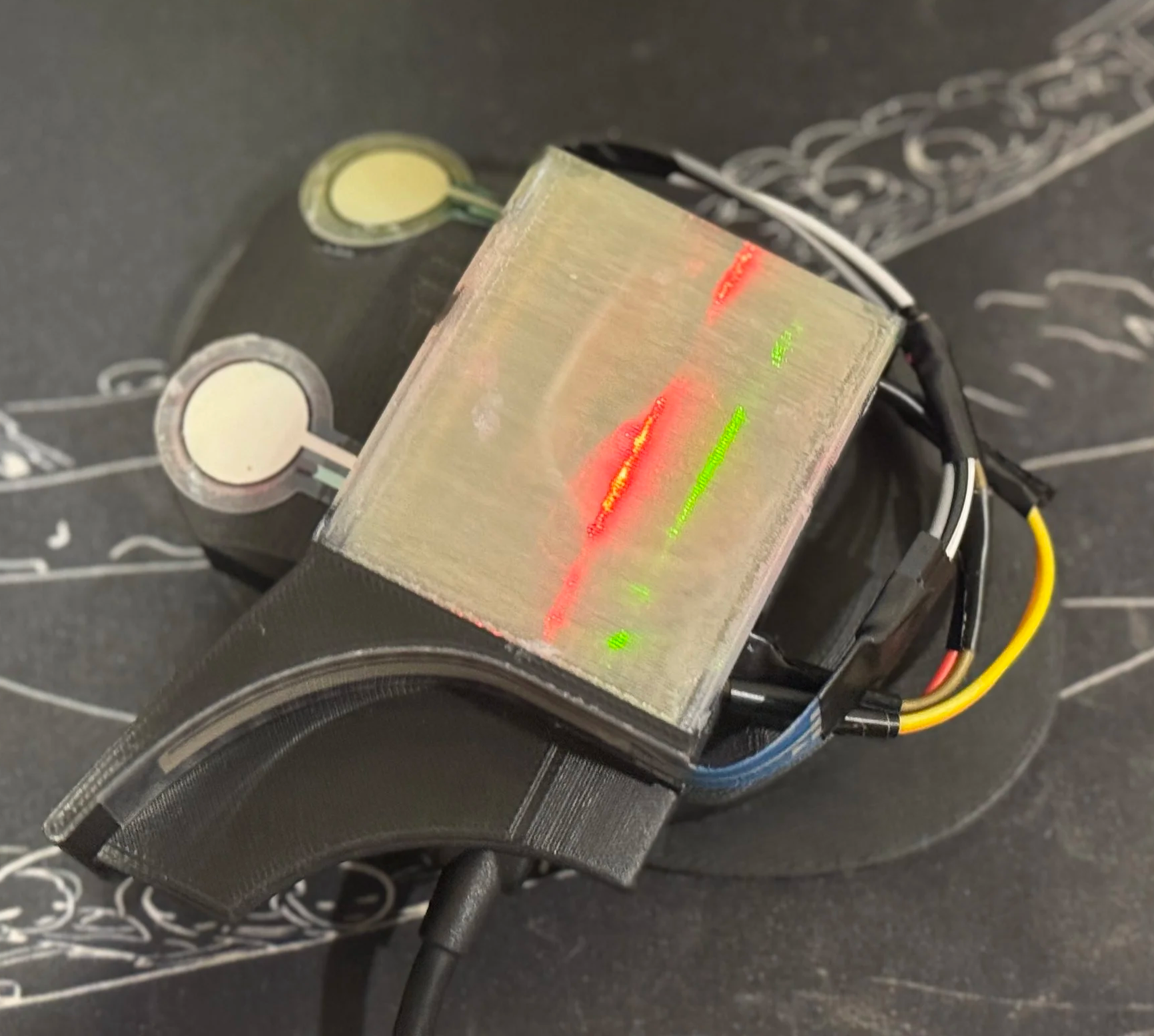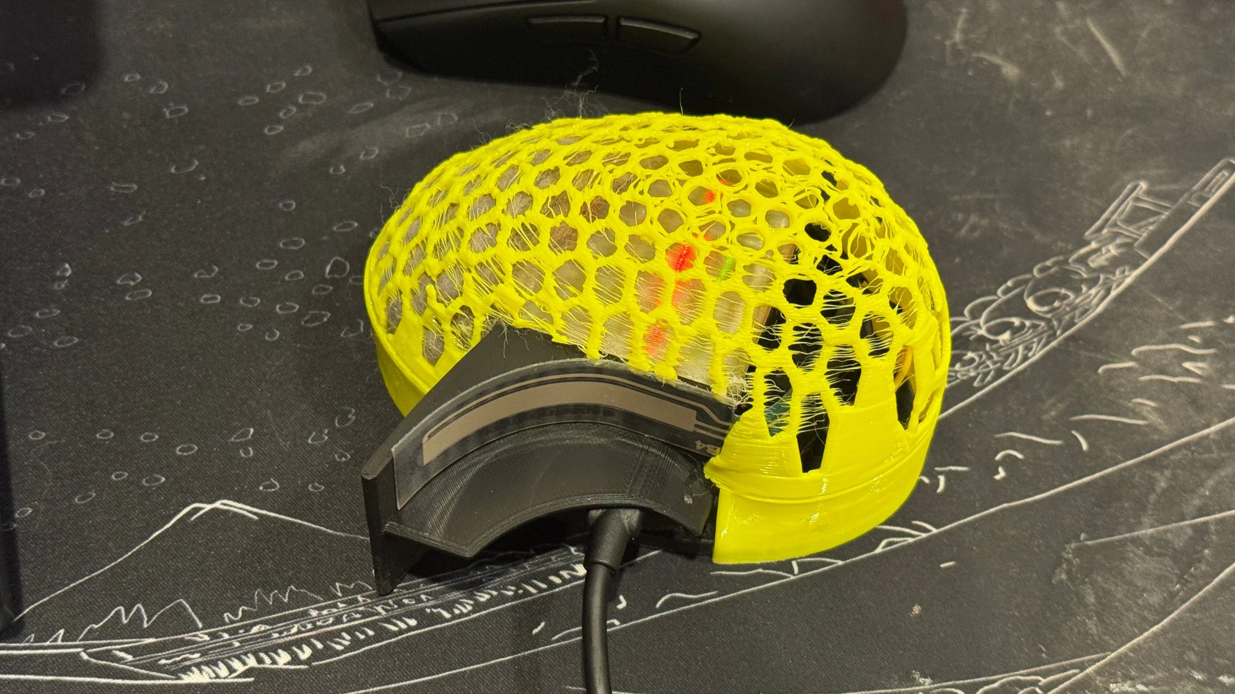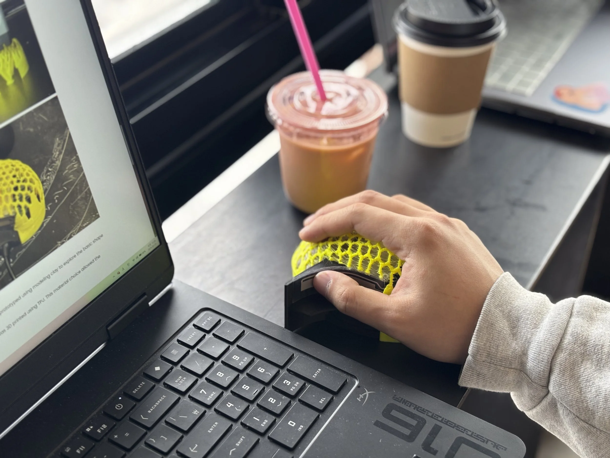 To achieve a structure that was both malleable and stable enough to adapt organically to different hand sizes, the outer shell was 3D printed using TPU. This material choice allowed the mouse to maintain structural integrity while remaining soft and responsive during prolonged use.