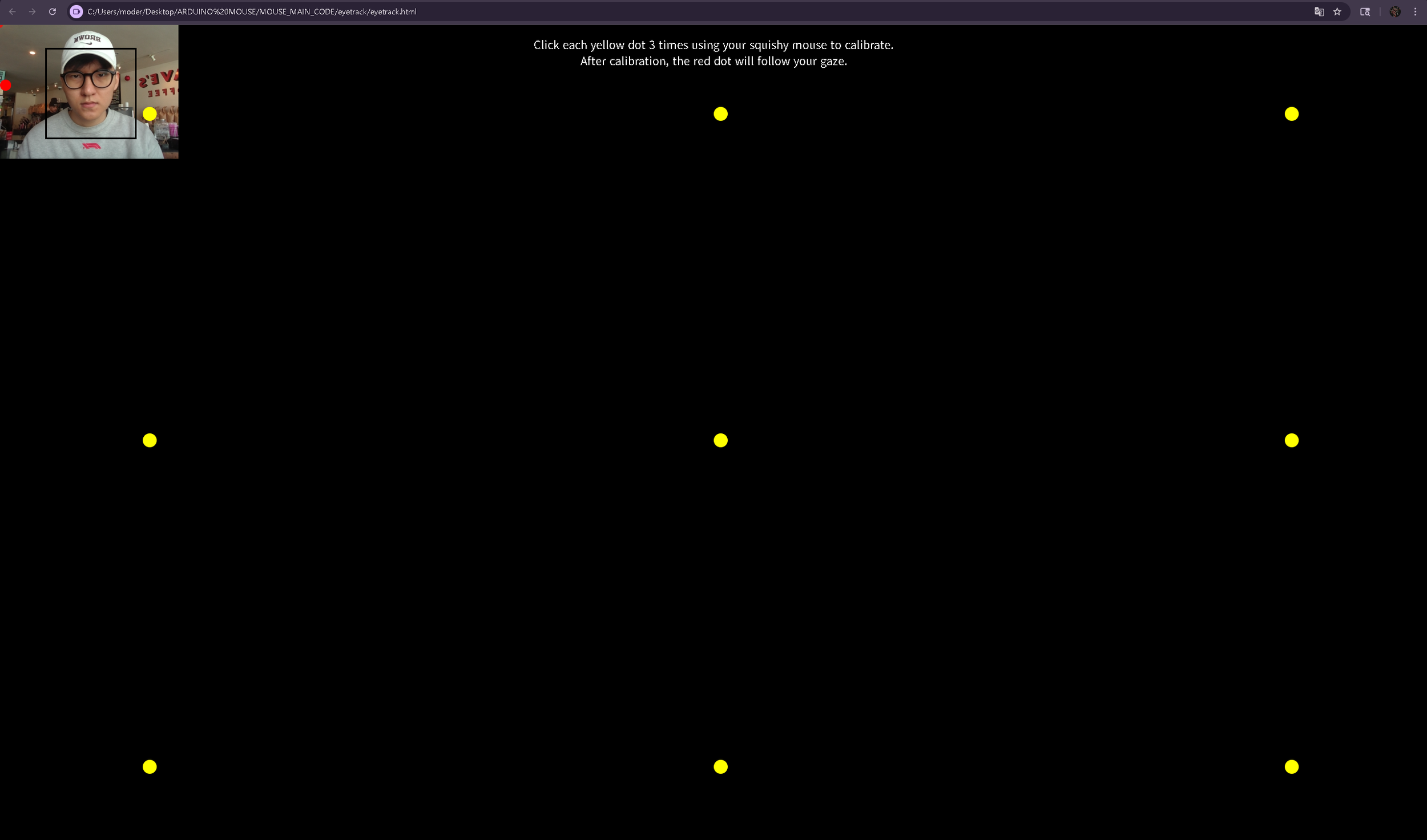 Eye tracking was explored using open source tools such as WebGazer and MediaPipe with a laptop webcam. Although gaze tracking was possible, the precision required for dependable mouse cursor control was not achievable, revealing the need for dedicated eye tracking camera hardware rather than a standard webcam.