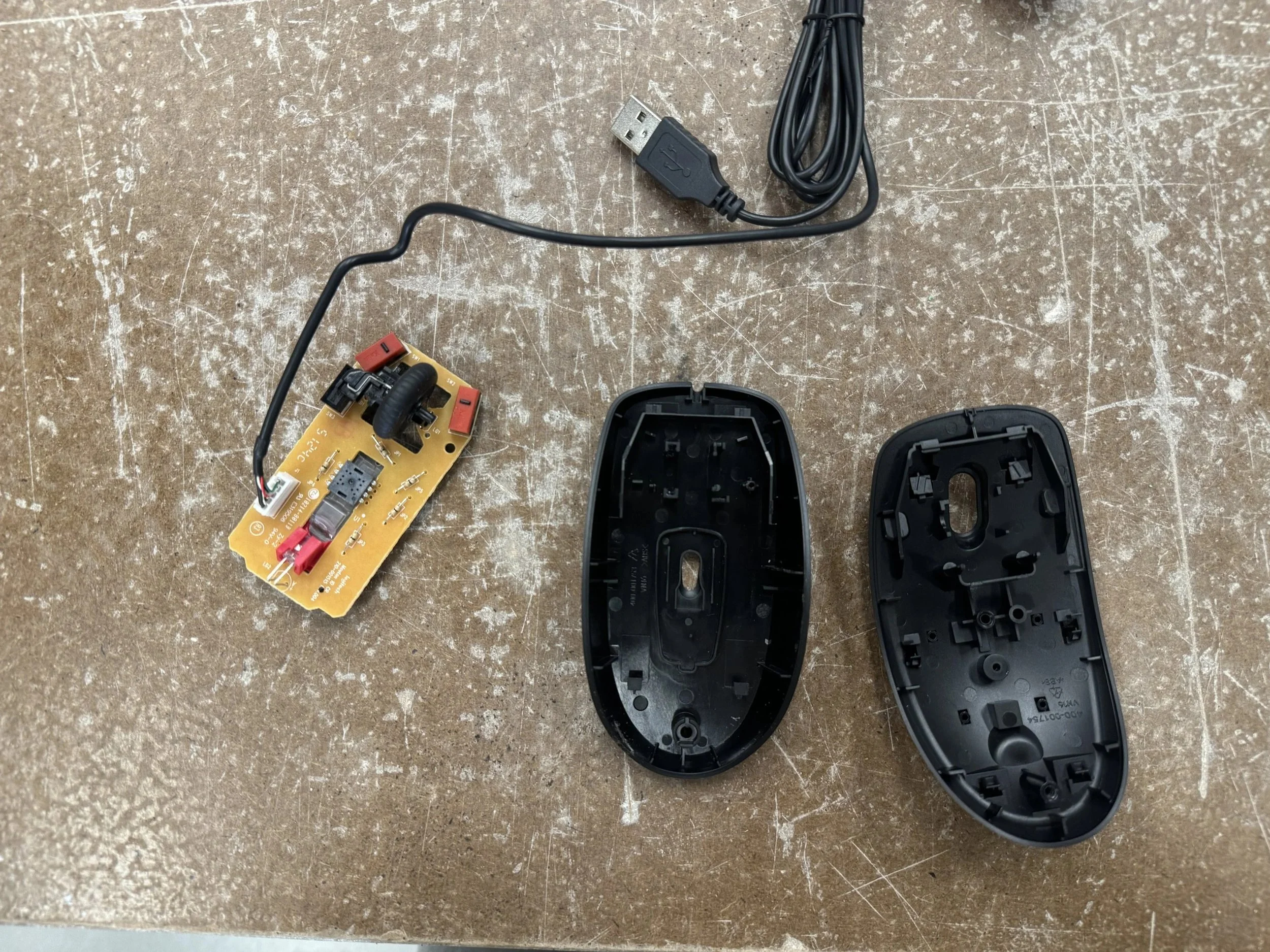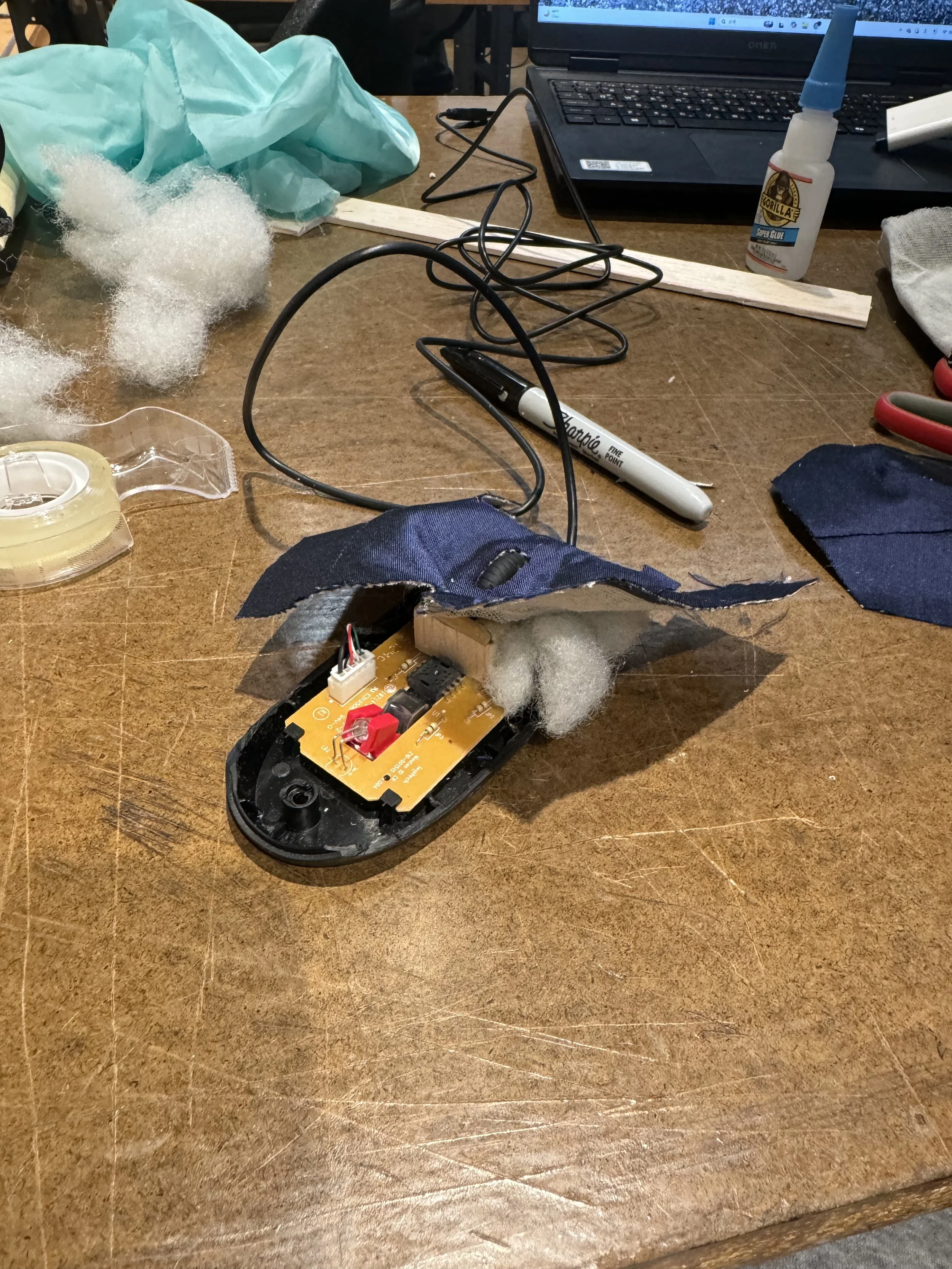 A regular office mouse was disassembled to experiment with how introducing softness could change the tactile experience of the mouse in the user’s hand.