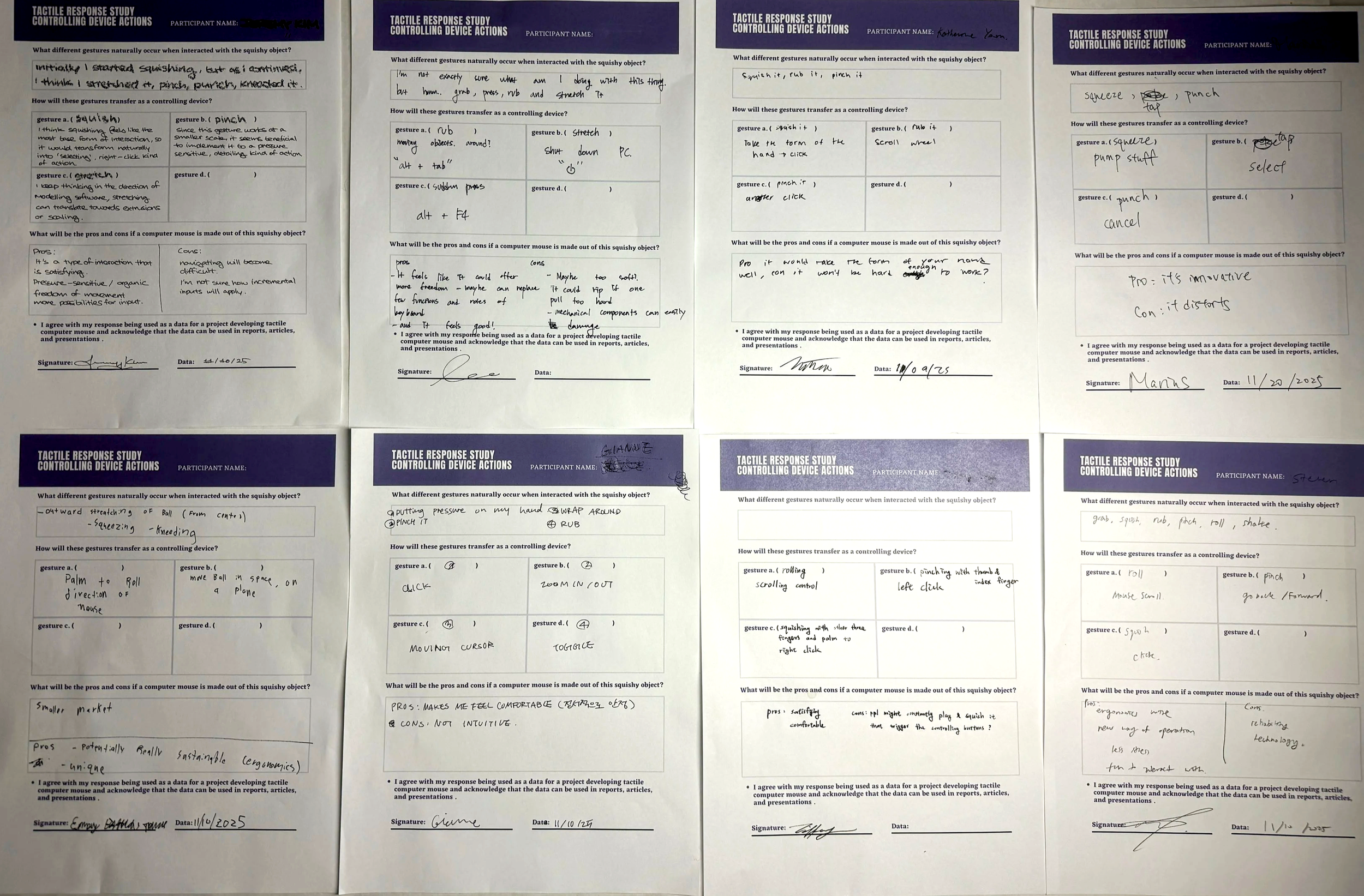 The study revealed two key limitations. Translating diverse tactile gestures into a reliable technological system proved challenging, and users were strongly conditioned to conventional mouse inputs such as left click, right click, and scrolling.