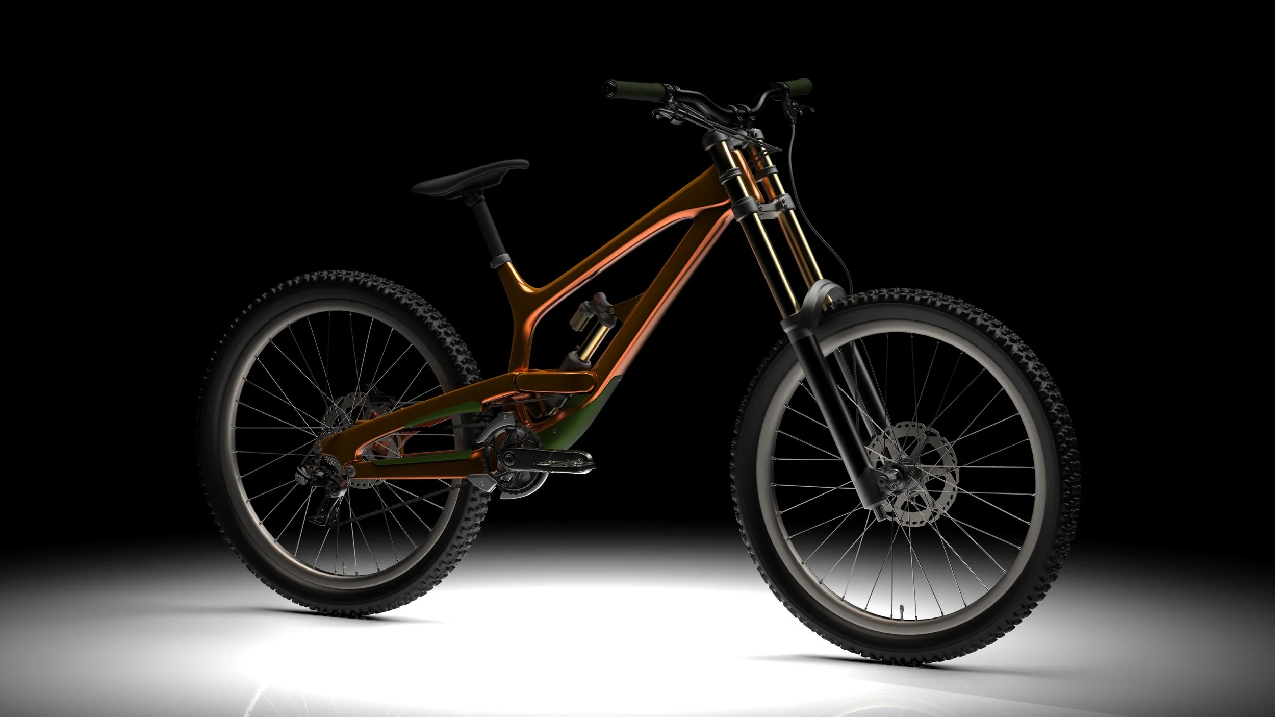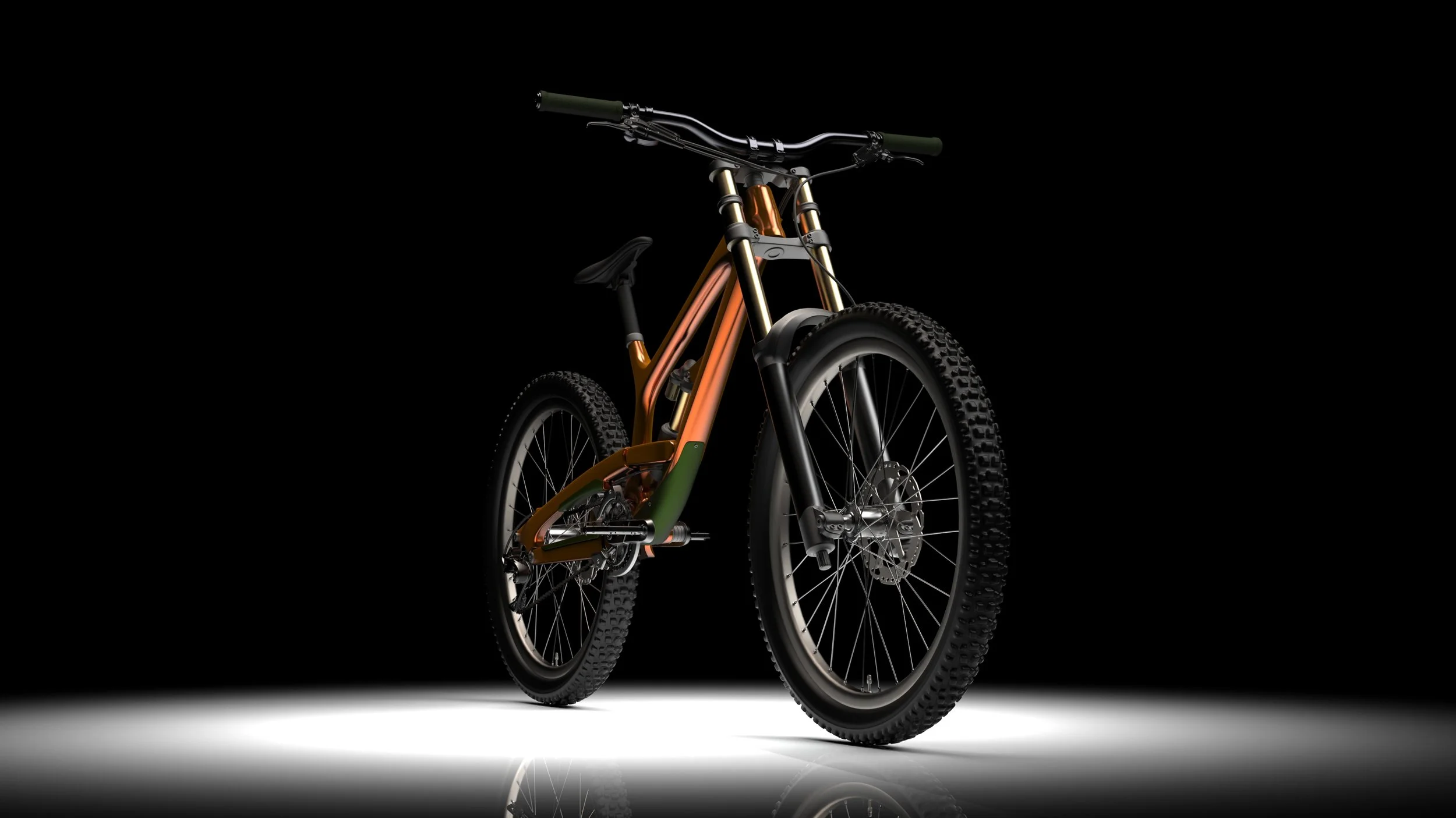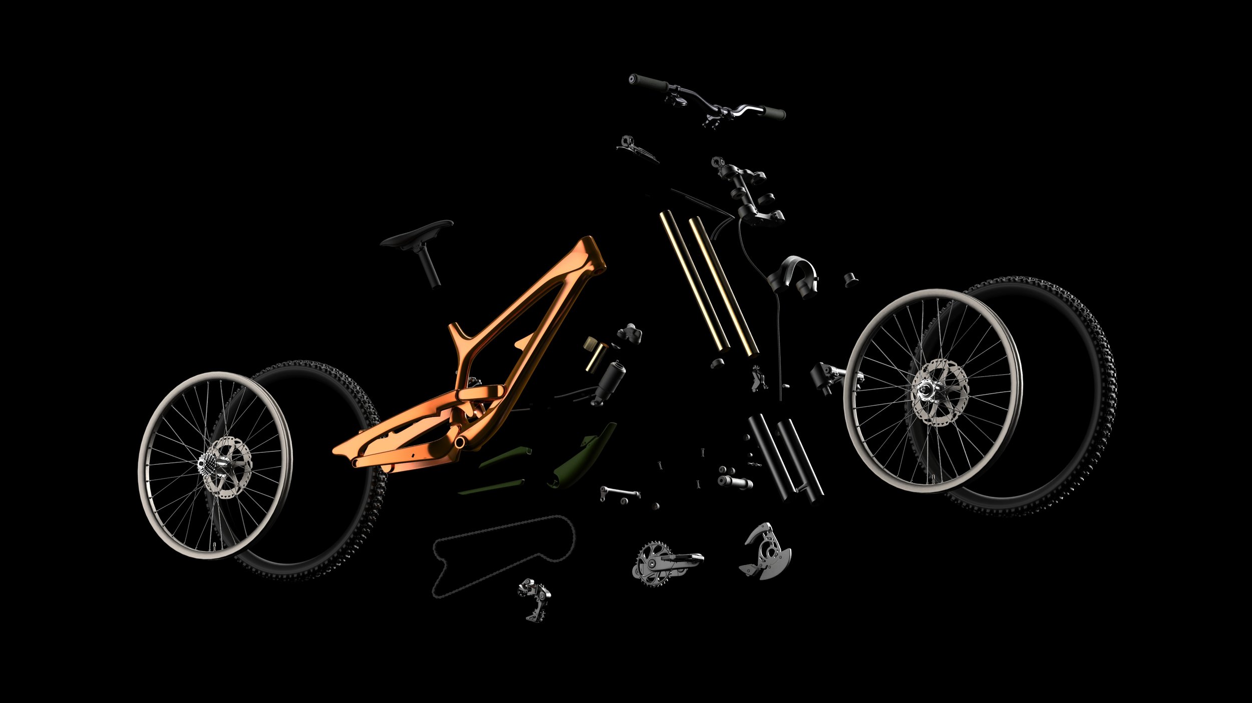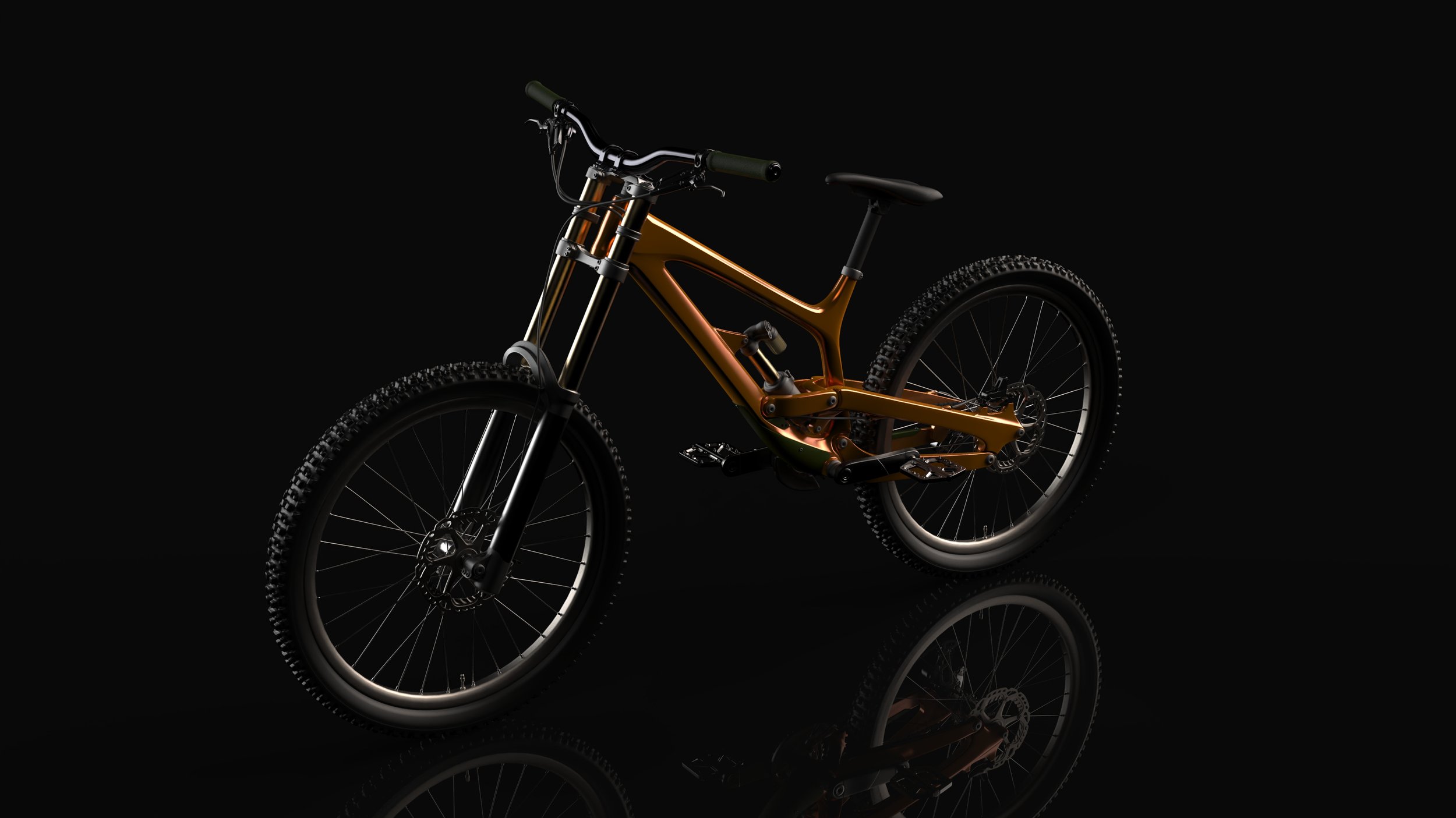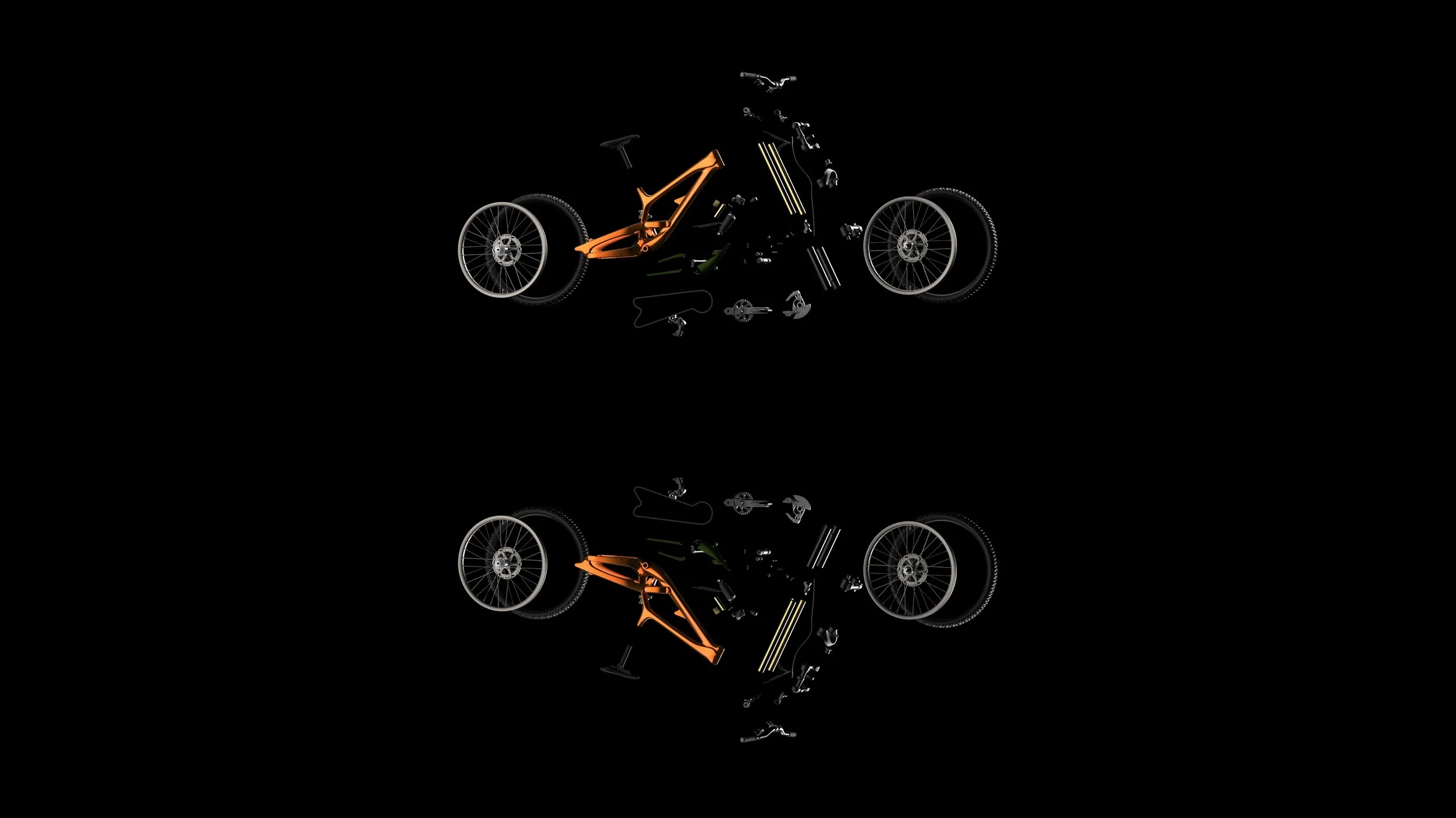 Mountain Bike Renderings Type Rendering Duration Feb 2026 Tools Keyshot To improve rendering skills, different settings for CMF, light, environment, camera, and animations were experimented for professional product visualization. Mountain bike model was downloaded from an open source website. Thanks for spending time with my project. Next Project